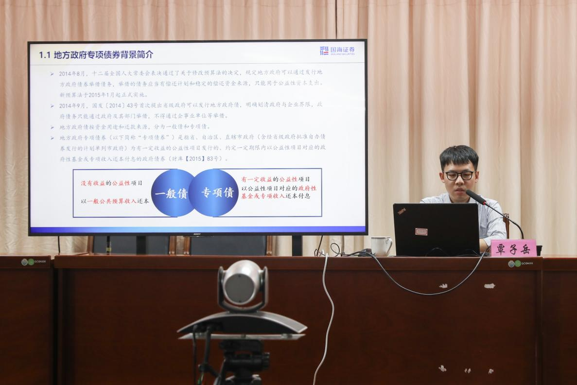 (图四):国海证券固定收益部高级经理覃子岳同志在授课